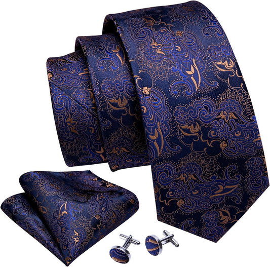 Classic Elegant Floral Men Ties Paisley Formal Woven Silk Necktie Set Pocket Suqare Cufflinks