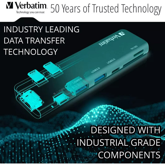 Verbatim 7-In-2 USB C Hub Adapter with 4K HDMI, 100W Power Delivery, USB 3.0, SD Card Readers for Macbook Pro and USB C Laptops